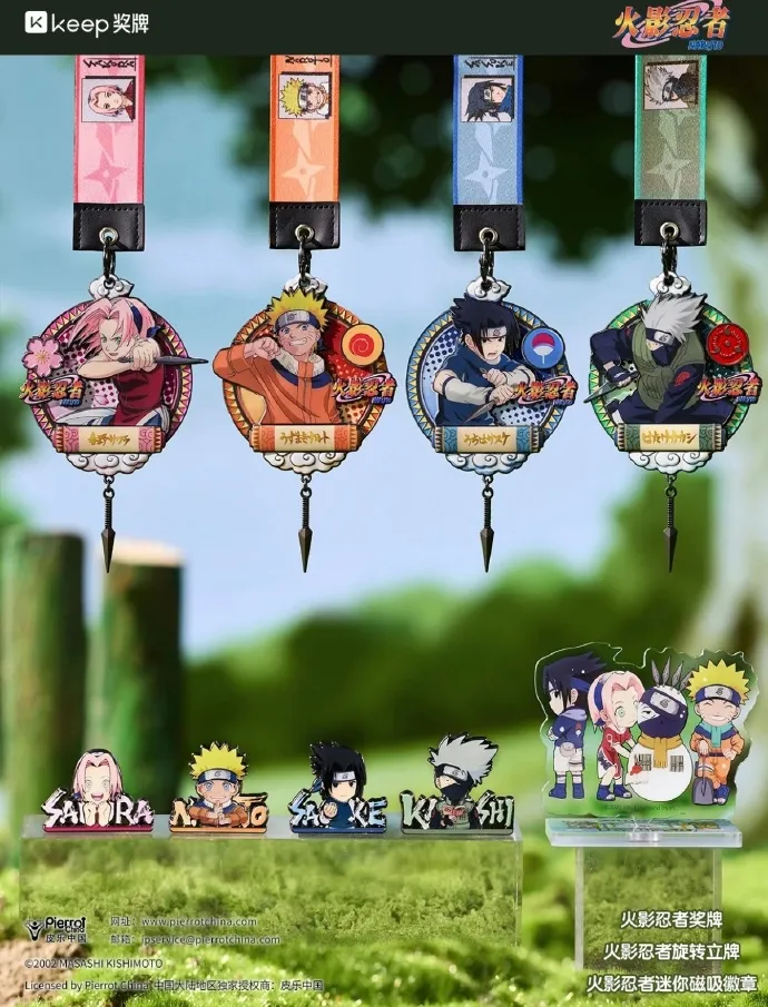「正面」☁️多层亮面浮雕战斗姿态造型搭配立体云纹装饰「可旋转装置」家族徽章「印记」火影忍者经典LOGO下方卷轴撰写角色姓名「背面」&「下方」双层可旋转设计磁吸「手里剑」取下可做冰箱贴搭配悬挂「苦无」细节拉满