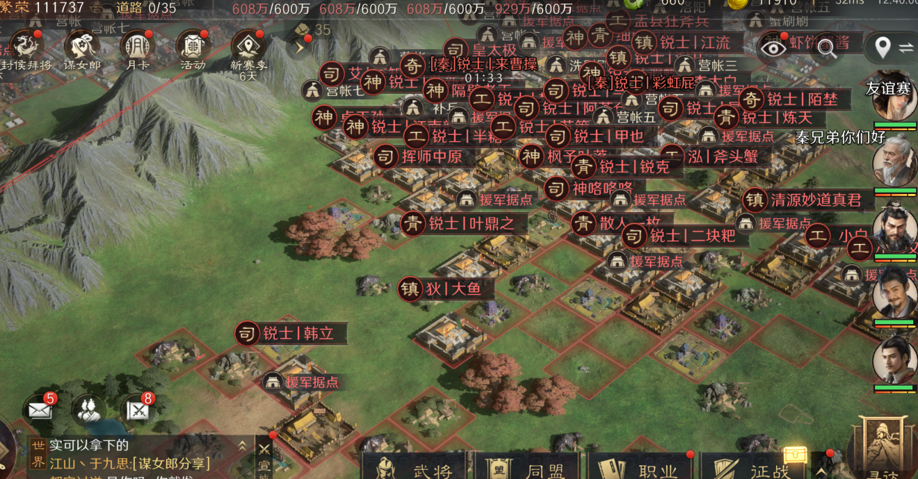 不同于传统游戏的"固定套路",这里的每一场战役都是动态的:河流可能因暴雪结冰,粮仓可能被偷袭焚毁,盟友的支援路线随时可能被截断。玩家需要像DRG教练一样,根据战场形势快速调整策略——派神行职业绕后劫粮,让奇佐职业释放控场技能,用镇军职业正面施压,每一步都需要精准的判断。