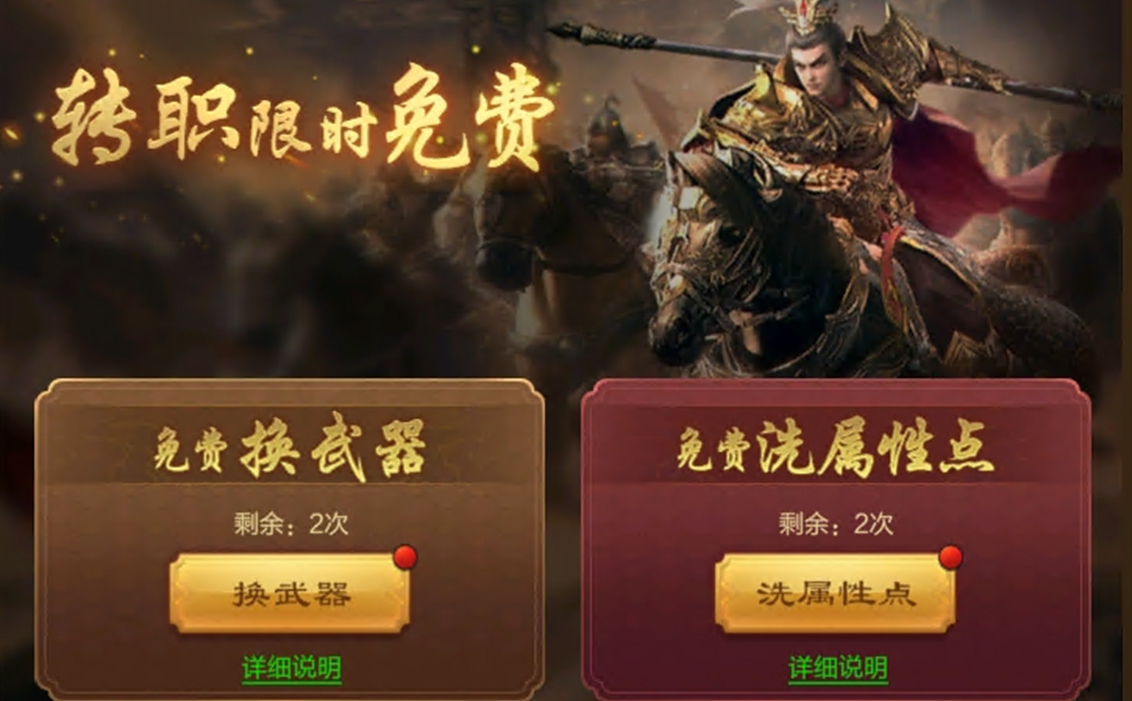 活动介绍:活动期间技能点、属性点全民免费洗点,更有免费换武器活动助你体验转职乐趣!
