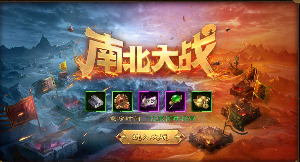 活动介绍:南北大战十国阵营对抗,战火重燃!南北大战结束后,获胜阵营排名第一的国家成为大国,该国所有官员称号前显示大国前缀,同时该国南帝\北帝可获得大帝称号,帝王专属时装图鉴、坐骑见证最强诞生!