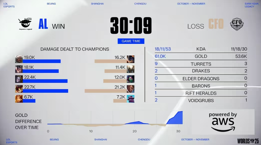 到了第三局,前期11分钟AL又拿到一血。CFO则三人合力击杀了圣枪哥,并控制了先锋推塔,但在推塔过程中有两人被AL击杀。CFO在中路开团掌控了节奏,不过随后被AL在厄塔汗团战中团灭,圣枪哥使用雷克塞完成三杀。后期AL拿到炼金龙魂,29分钟击杀四人后中路一波结束了比赛,最终以2 - 1的成绩击败CFO晋级八强。