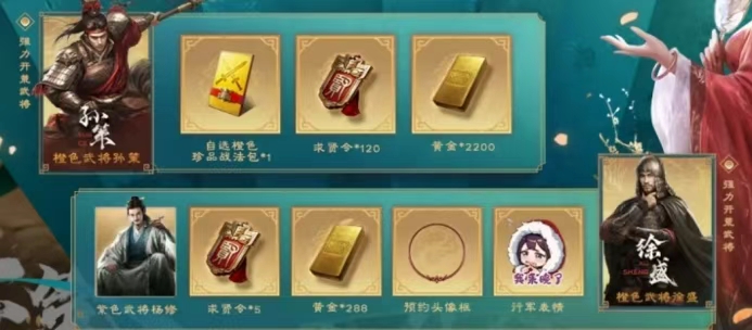 先说最实在的,创建角色就能抱走一堆好东西。全服预约奖励直接拉满:强力橙色武将徐盛、大量黄金、求贤令,加起来足足 125 抽。这抽卡福利什么概念?游戏里 8% 的出橙率本就不低,再配上 5 抽 390 金的超低价和 20 抽保底橙卡的机制,新手起步抽卡完全没压力,不用担心 “非洲人” 体质被卡关。