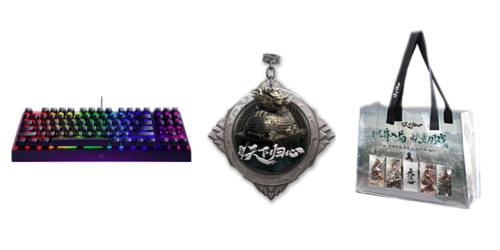 为酬谢主公们的支持与厚爱,小林、小羽军师特备下厚礼:雷蛇黑寡妇V3机械键盘、《三国:天下归心》限定周边等,更多奇珍异宝,静待帐中揭晓!