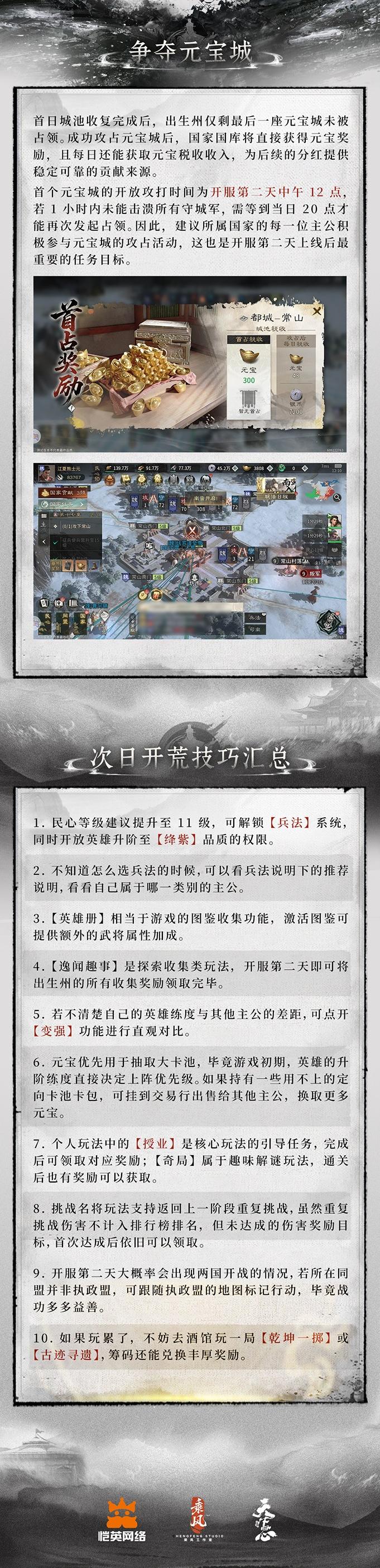 归心韬略丨战力提升、元宝城争夺,游戏次日进阶指南!