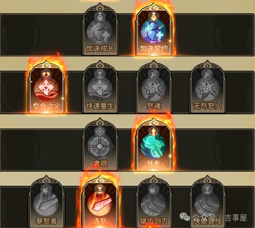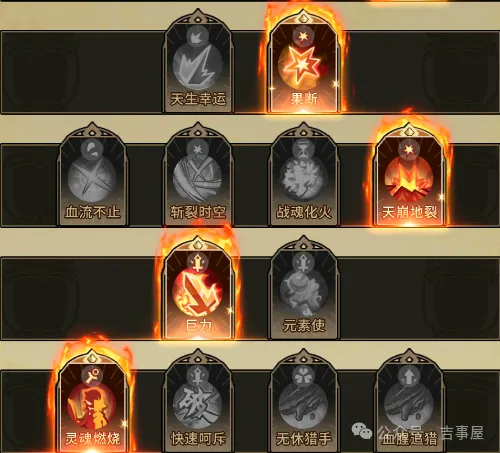 第1行点元素鼓舞加成伤害(推图有难度的时候可以选择元素庇佑,遇到特定反弹伤害时候可以选择消音护甲)
