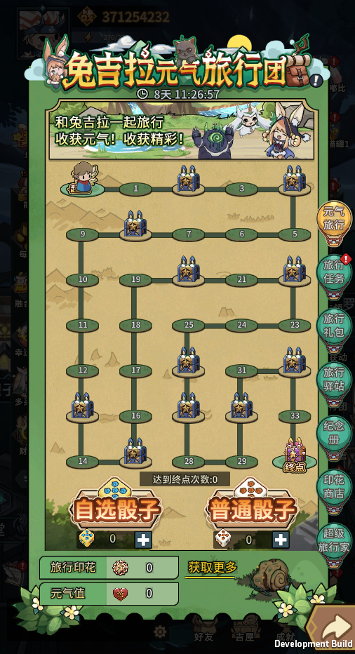 活动期间,可以通过完成任务或购买礼包等途径获得旅行骰子,使用骰子可以在活动地图上与兔吉拉一起旅行