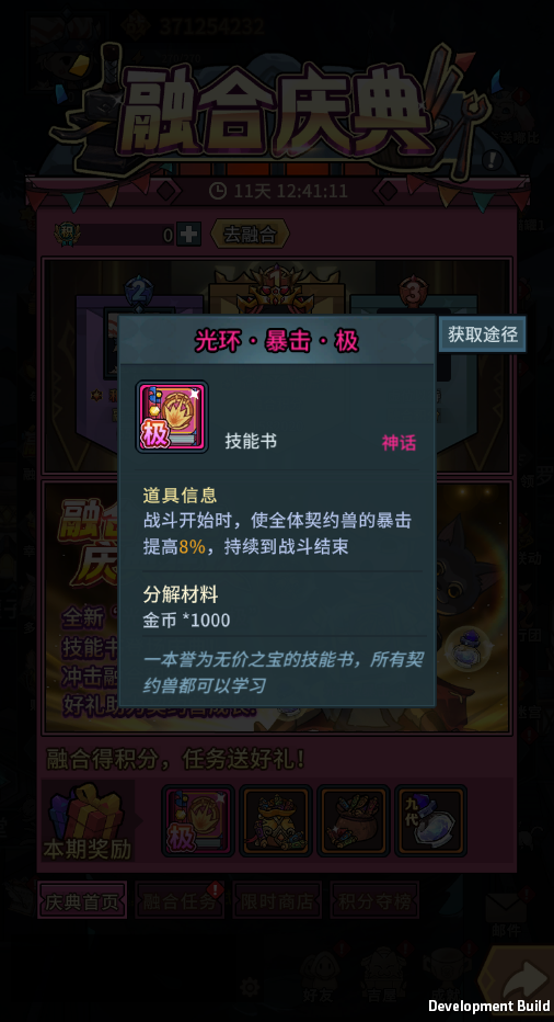 融合庆典重磅开启!全新光环暴击极品技能书登场,全民参与助力契约兽成长