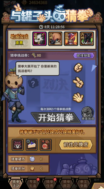 1)完成猜拳任务或购买专家礼盒可获取猜拳挑战券,消耗挑战券与罐子头进行猜拳