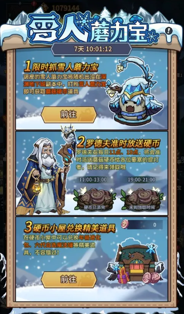 2)罗德夫每日11-13点,19-21点准时免费放送【蘑菇硬币】道具,获得的【蘑菇硬币】可在【硬币兑换屋】内兑换道具