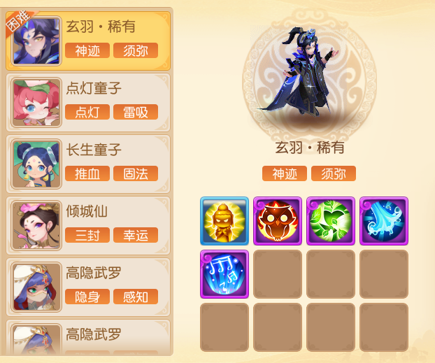 至尊二主怪玄羽为小雷音,“斩业火”及“一劫为魔”的单点对召唤灵单位杀伤力不俗,在愤怒值充足情况下推荐少侠使用特技“罗汉金钟”。