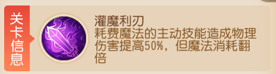 关卡特性:耗费魔法的主动技能造成物理伤害提高50%,但魔法消耗翻倍。