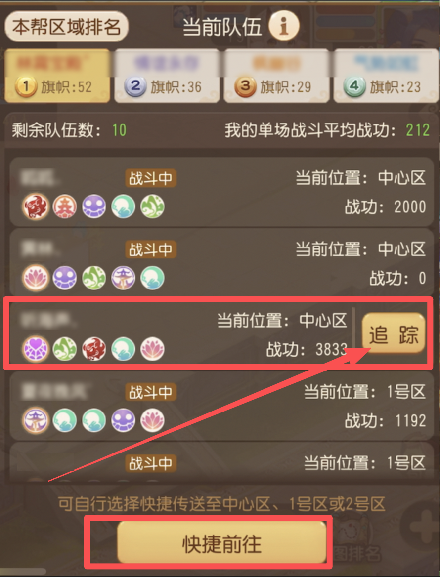1、优先组织帮派内高战力成员直奔中心区,快速清理对战帮成员拿到中心区域高战功,从而获取高排名以及中心区域旗子增益。抢占先机;