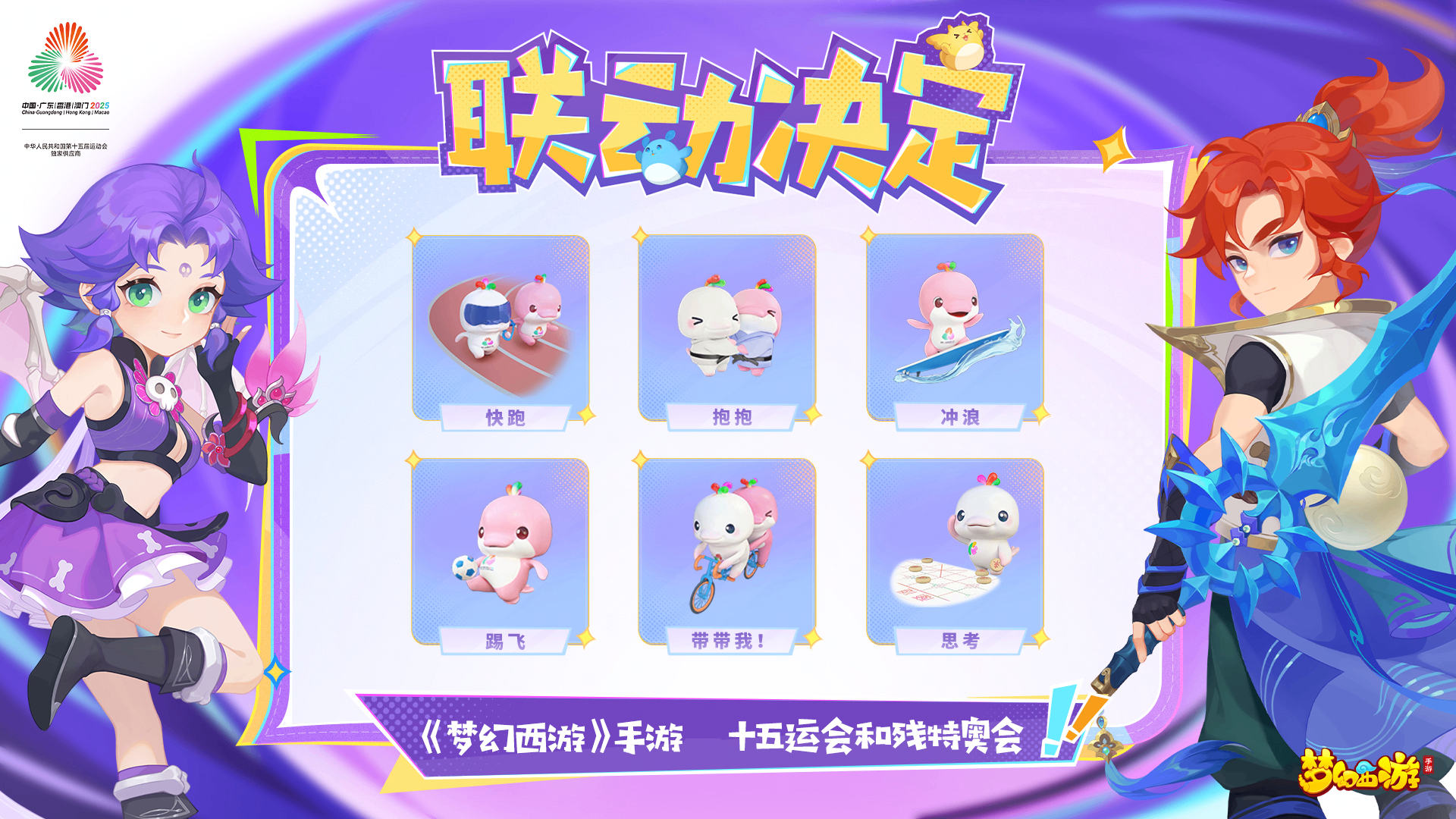 梦幻同行喜洋洋,闪耀全运乐融融!《梦幻西游》手游携手十五运会和残特奥会联动活动——全运集章将于11月5日10:00在部分服务器开启测试,11月5日12:00在全部服务器放出。