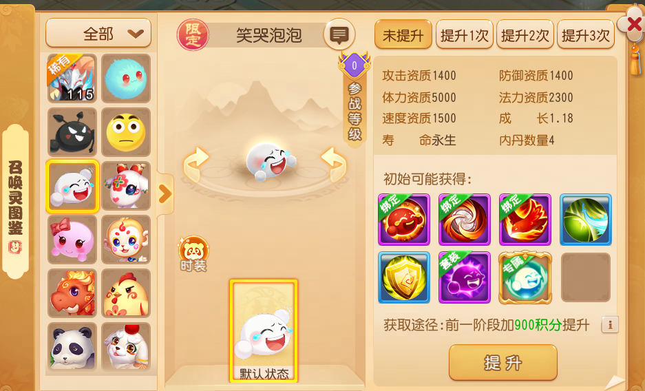 ※ 特别说明:小笑哭泡泡与笑哭泡泡共用专属内丹与套装。
