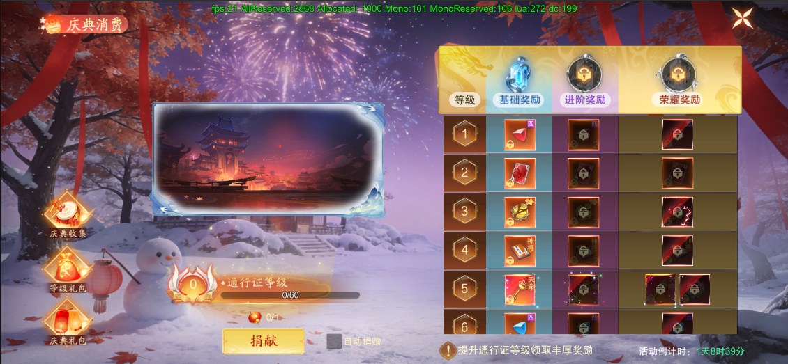 通过完成庆典收集里的任务,可提升庆典通行证的等级,庆典通行证的等级越高,奖励就会越丰厚。解锁进阶奖励和荣耀奖励,还能获取更多的升级材料。还可以通过购买等级礼包加速提升庆典通行证等级