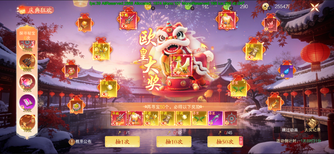 消耗天命秘钥进行抽奖,欧皇大奖需要2550次,具体获奖次数实际上会有20%的浮动