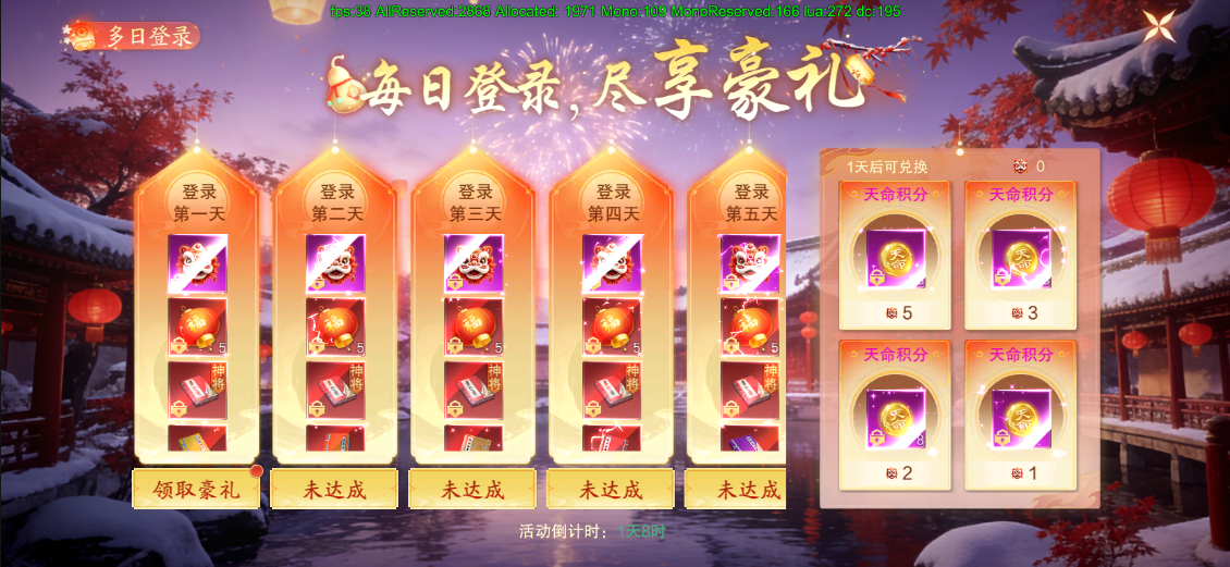活动期间内,连续登录送豪礼,且连续登录可通过每日登录送的迷你舞狮去兑换天命积分