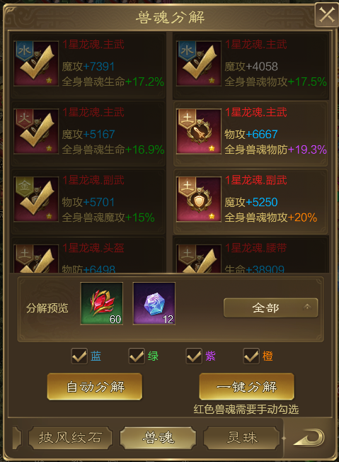 龙魂还可以分解,回收后接着继续打造,不打出极品龙魂咱不罢休!