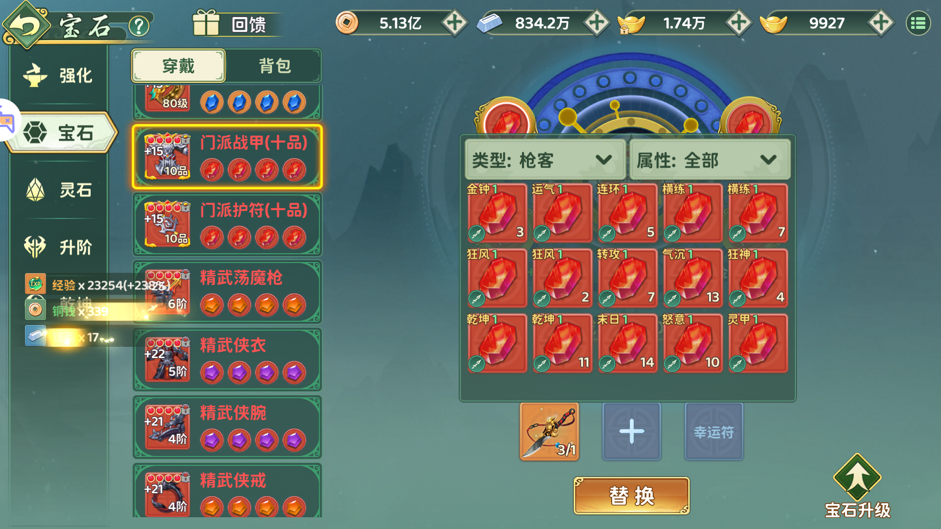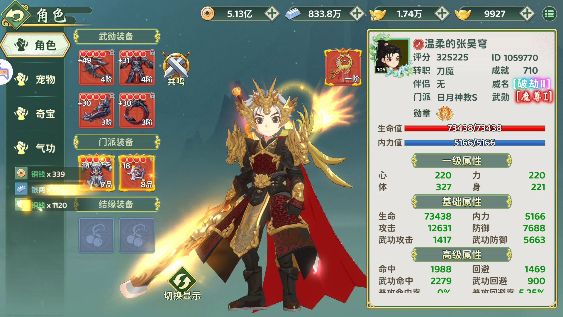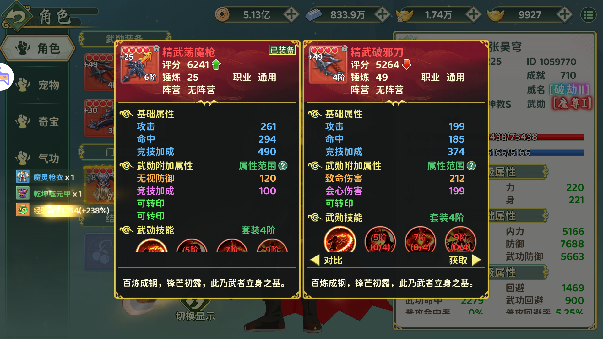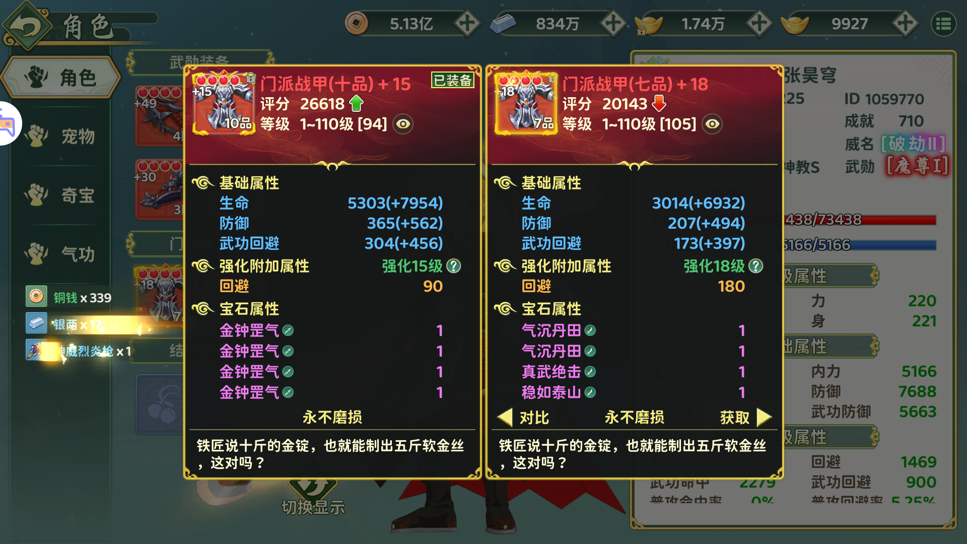 我现在已经明白,角色强大,主要是在武勋装备与门派护甲上。