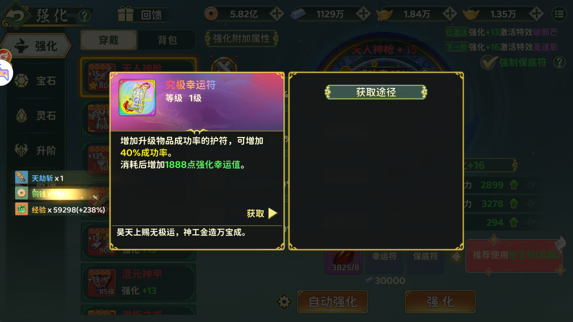 百分之四十等级强化幸运符一定要好好保留,不到100级的装备别用。