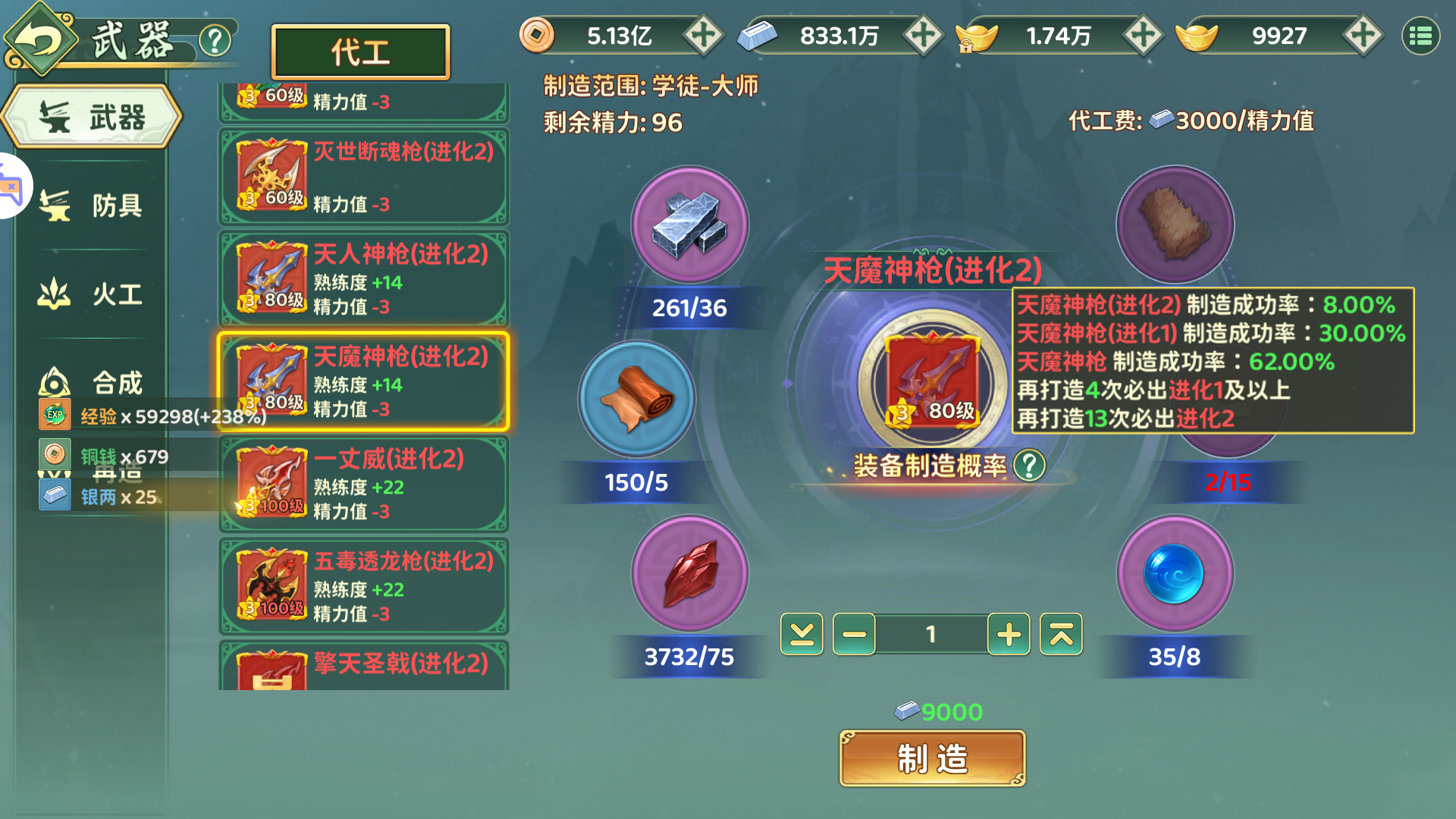 在制造中,我们可以直接收集足够的材料,去制造更高等级的进化武器和装备,获得更好的整体评分!