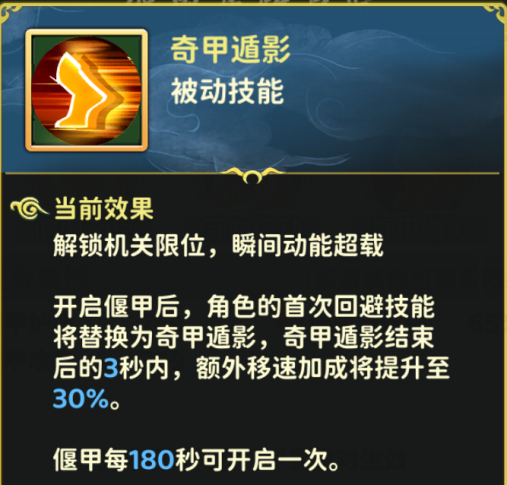 偃甲分别有“偃门玄甲”“万向传动”“奇甲遁影”技能