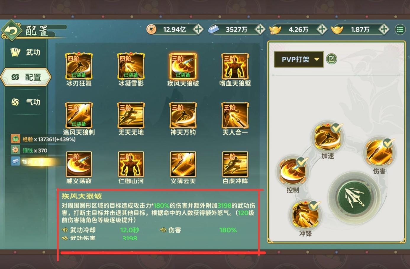 最后是打【伤害】的,“追风天狼刺”或者“义薄云天”。
