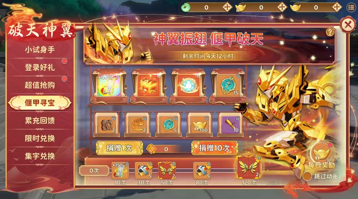破天神翼强势返场,累计寻宝次数达标即可领取神翼碎片,机会难得,千万不容错过