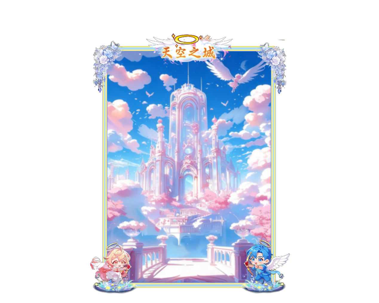 远方的「圣光主题背景」云海翻涌、圣殿伫立,让人仿佛置身被祝福的世界。