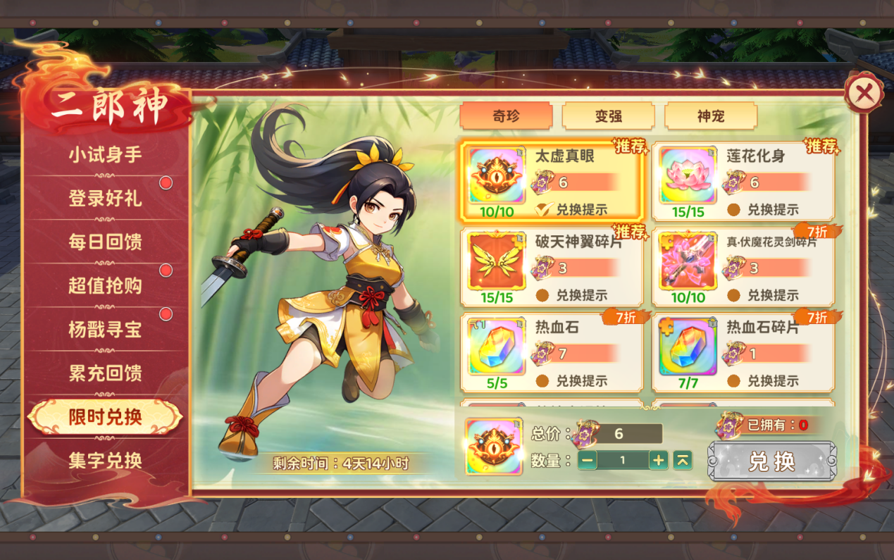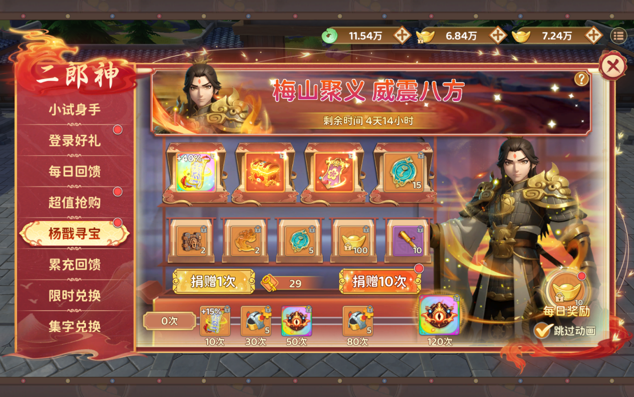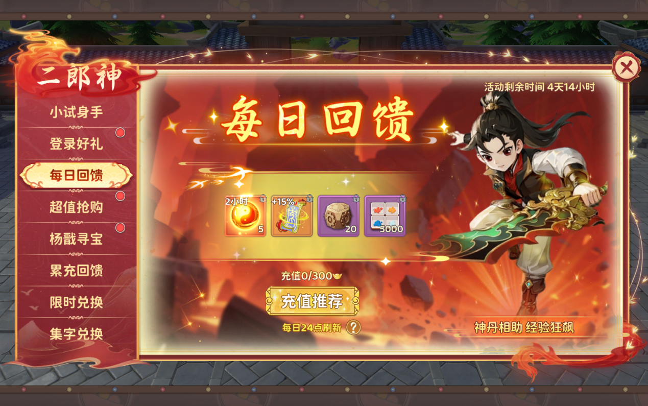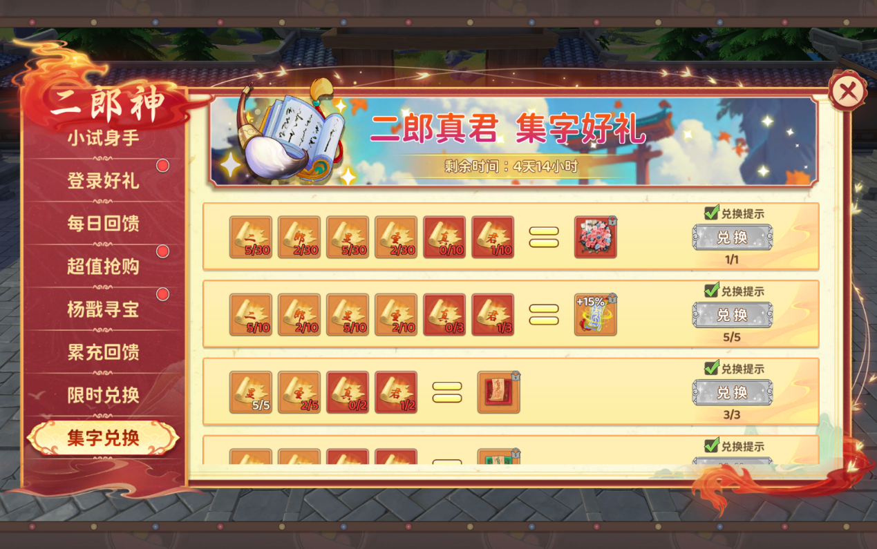 活动期间,收集“二”“郎”“显”“圣”“真”“君”六个字,数量越多,奖励越豪华!