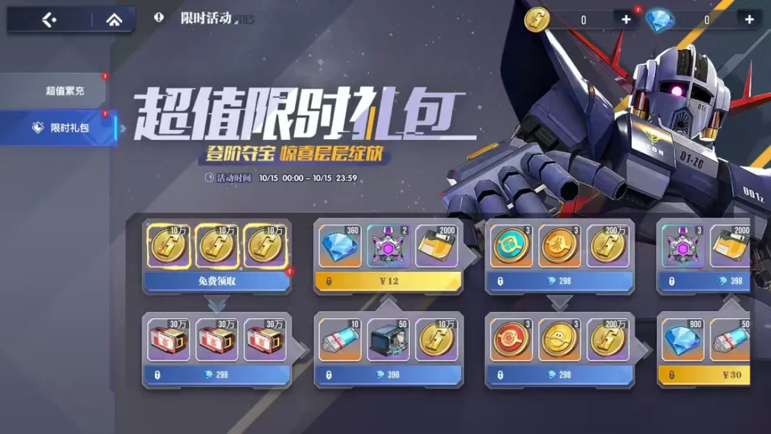 活动期间,指挥官可以优惠的价格购买【超值限时礼包】,获取大量机体培养素材,助力快速提升队伍战力。