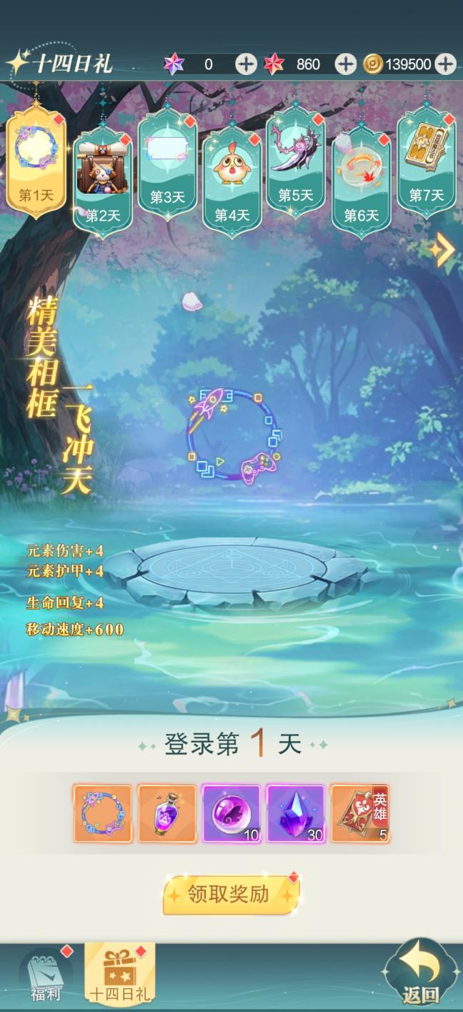 奖励涵盖精美头像框、个性服装、萌趣宠物、强力武器等,更有实用属性加成(元素伤害 + 4、元素护甲 + 4、生命回复 + 4、移动速度 + 600),每一份都能大幅提升前期战力!就算是零氪玩家,也能靠这些福利在新手村顺风顺水,轻松渡过练级初期~
