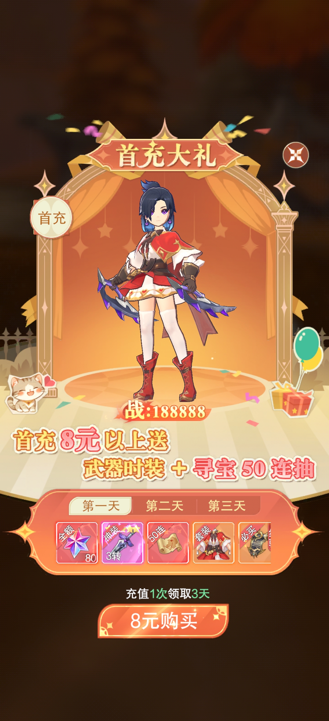 只需一次性充值 8 元及以上,即可解锁连续 3 天的丰厚奖励领取资格。