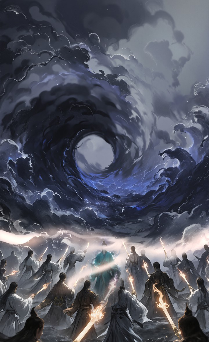 掌教大人,当年寂灭对剑渊界的侵蚀毫无征兆,黑色雾气席卷天地,此界修士虽同心协力、执剑反抗,却在寂灭的恐怖力量前节节败退,无数家园沦为废墟。看来这就是当时的画面了。