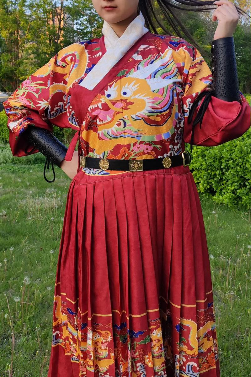 这袭惊艳众人的明制汉服,背后藏着深厚的历史底蕴。明代是汉民族服饰发展的成熟阶段,吸收了唐宋元素又自成体系:上衣多为交领右衽,衣长过臀;下裳以马面裙最具代表性,裙门对称、褶裥规整,行走时如月华流动;配饰讲究"从头美到脚",方巾、发簪、玉牌、宫绦各有章法。