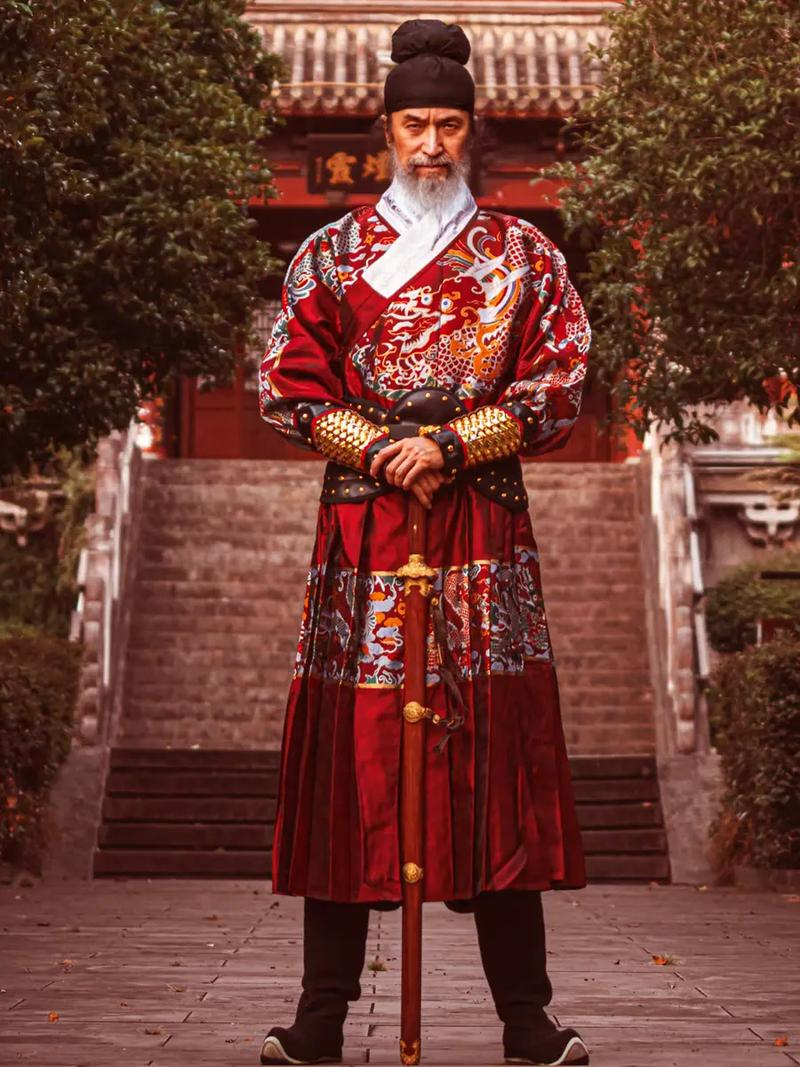 最近演员身着明制汉服的一组照片火了。青灰色交领窄袖短衫,外搭月白色比甲,下配马面裙,腰间系着丝绦,站在青砖黛瓦的古巷里,眉眼温润如墨画。评论区一片"古风美男本男"的惊叹,还有网友翻出他早年的古装剧对比。