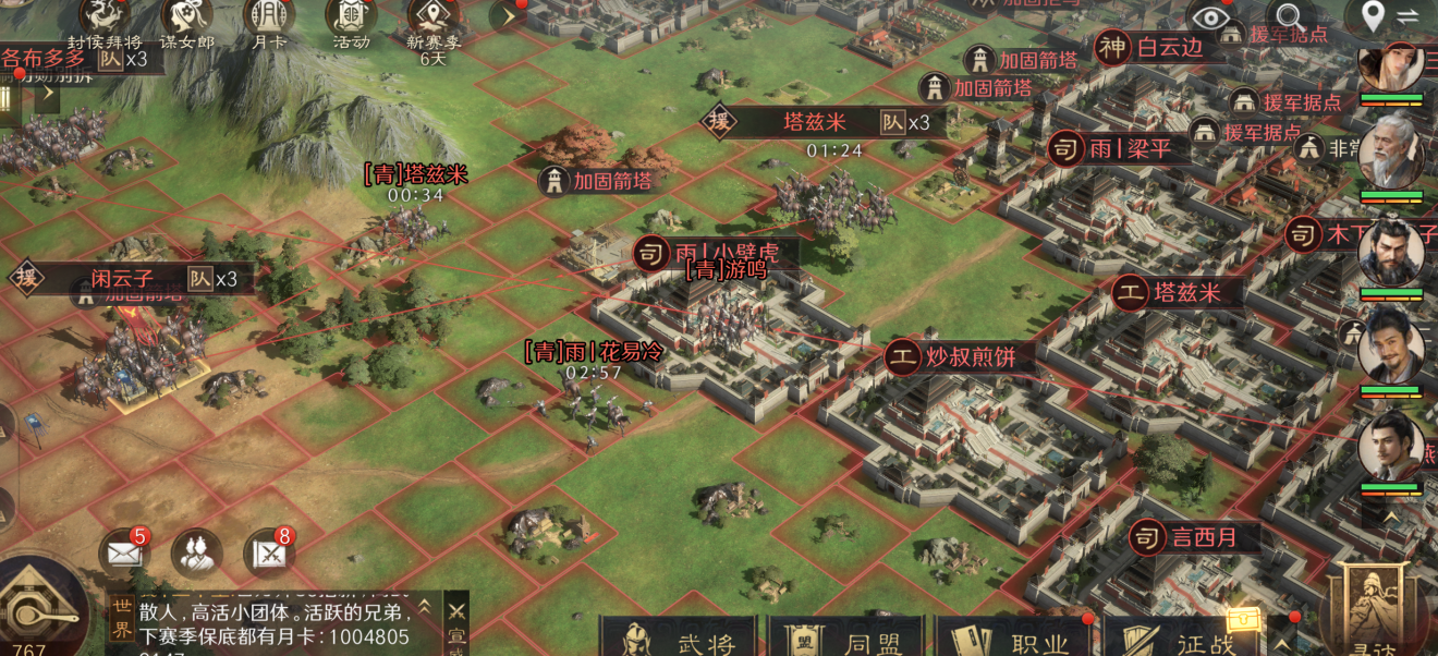 操作上的“减负”更是把新手的需求拿捏得死死的。自动铺路功能让你不用再手动点着地图一格格“开疆拓土”,手指轻轻一划,系统就帮你规划好最优路线;主城里自带的资源土地,避免了和其他玩家抢地的麻烦,连盟主都不用再当“调解委员”;练兵所能自动帮你升级部队,哪怕你暂时离开游戏,士兵们也在悄悄变强。最让新手安心的是武将等级置换功能,战法等级重置也只用铜币,完全不用心疼之前的投入。