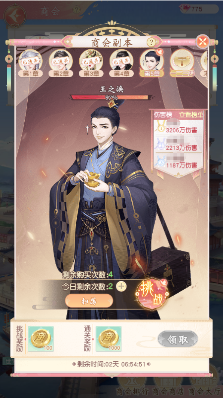 掌柜选择自己创建或加入其它掌柜的商会,商会科技及副本需要商会2级才可解锁。掌柜可通过商会建设获得个人贡献,可用于提升商会科技,提升伙伴属性值。