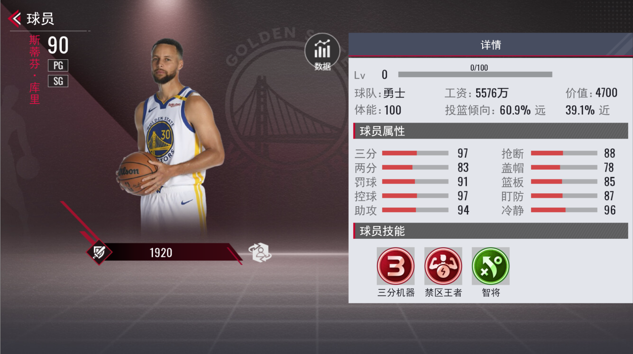 斯蒂芬·库里出生于美国俄亥俄州的阿克伦市的篮球世家,在2009年被金州勇士首轮第7顺位选中。他的父亲戴尔·库里曾是NBA赛场上有名的神射手,如今的库里已然超越自己父亲,成为NBA历史长河中一颗璀璨夺目的巨星。他“无解”的三分球改变了NBA的战术格局,让“小球时代”悄然降临。游戏中库里可担任队伍的控球后卫或得分后卫。