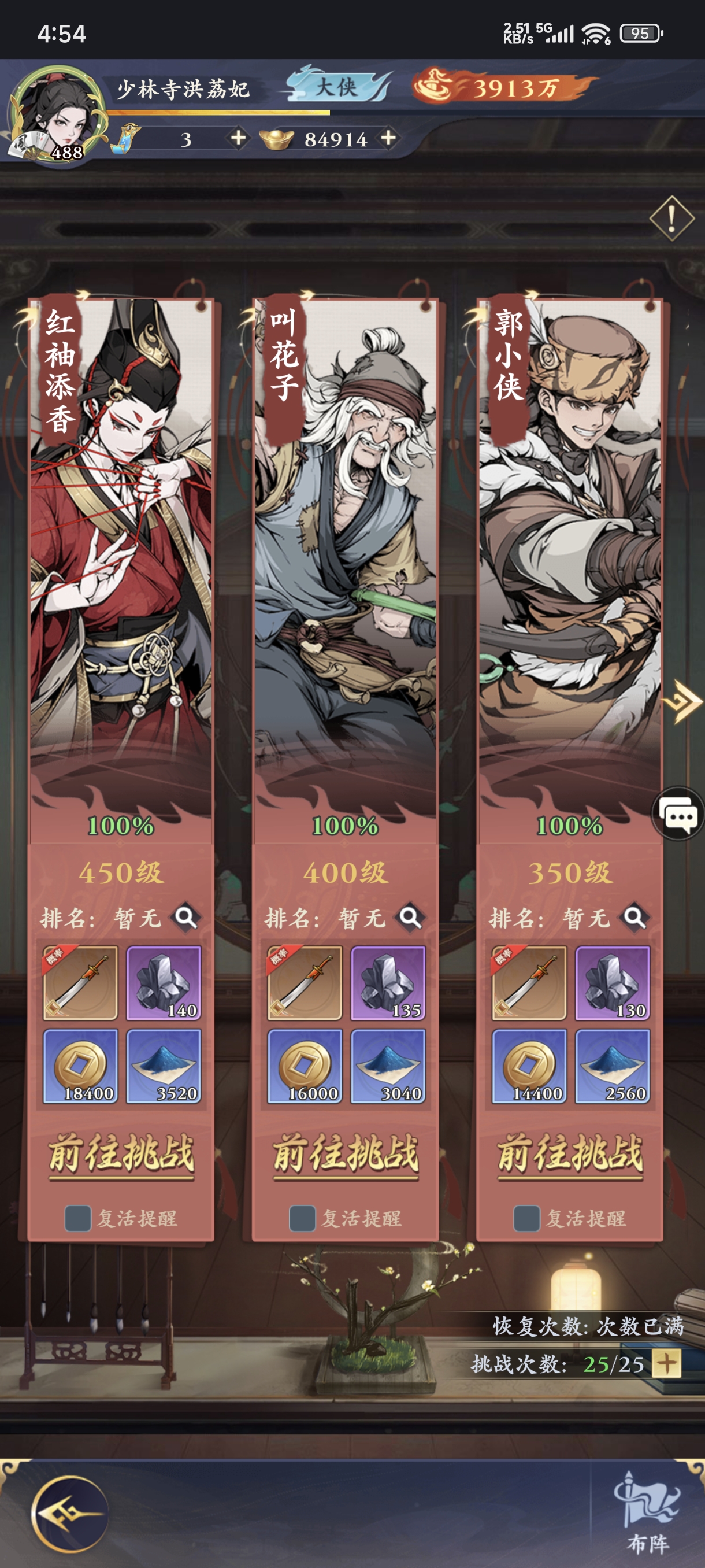 4、挑战的掌门人等级越高,其难度也会增加,击败后获得的奖励就越丰厚。