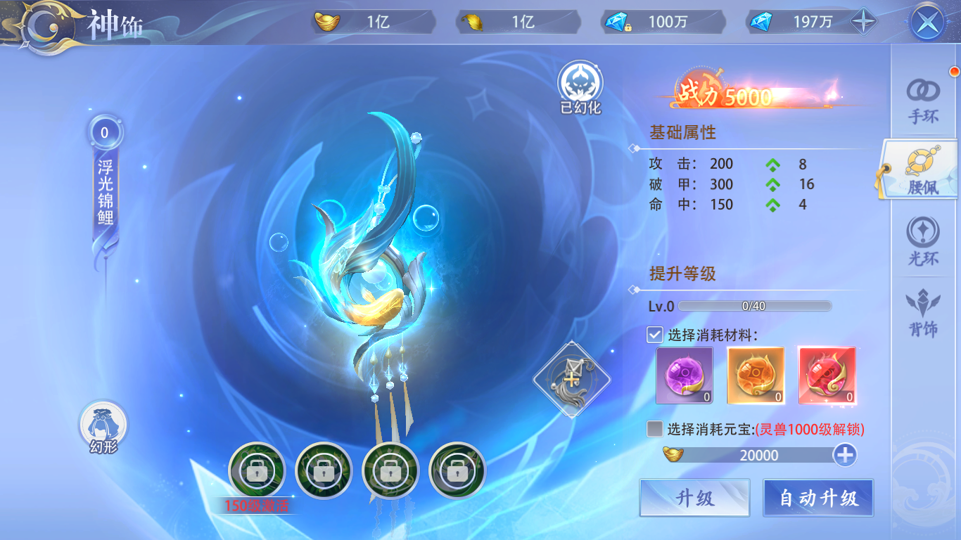 游戏内可通过进阶解锁的外观形象,也可使用道具激活幻化形象。已经解锁的腰佩形象,玩家可随意选择幻化。