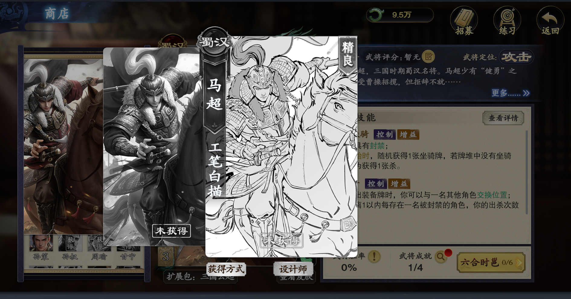 上图中的工笔白描是每个武将对应的线稿皮肤,7阶后可获得动态皮肤。由于只有升到6阶、7阶才有,有较高的稀有度。