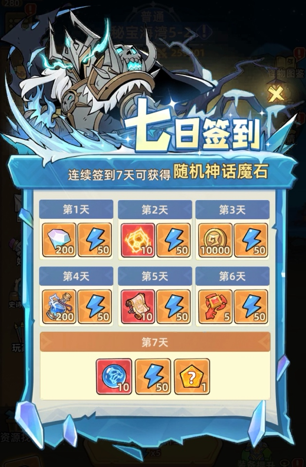 每日签到来助你,登录即可领取体力,累计还可获取神话魔石,战力 upup!