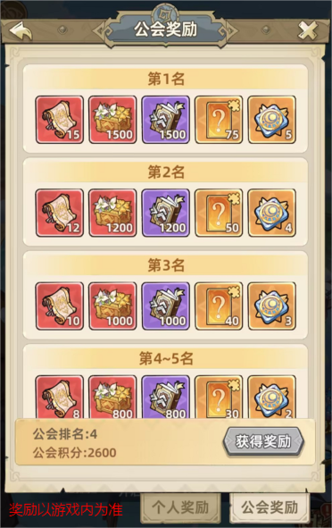3、公会齐心共战强敌,还有史诗之卷、战魂领悟道具、橙色战魂等奖励等待公会全员获取。