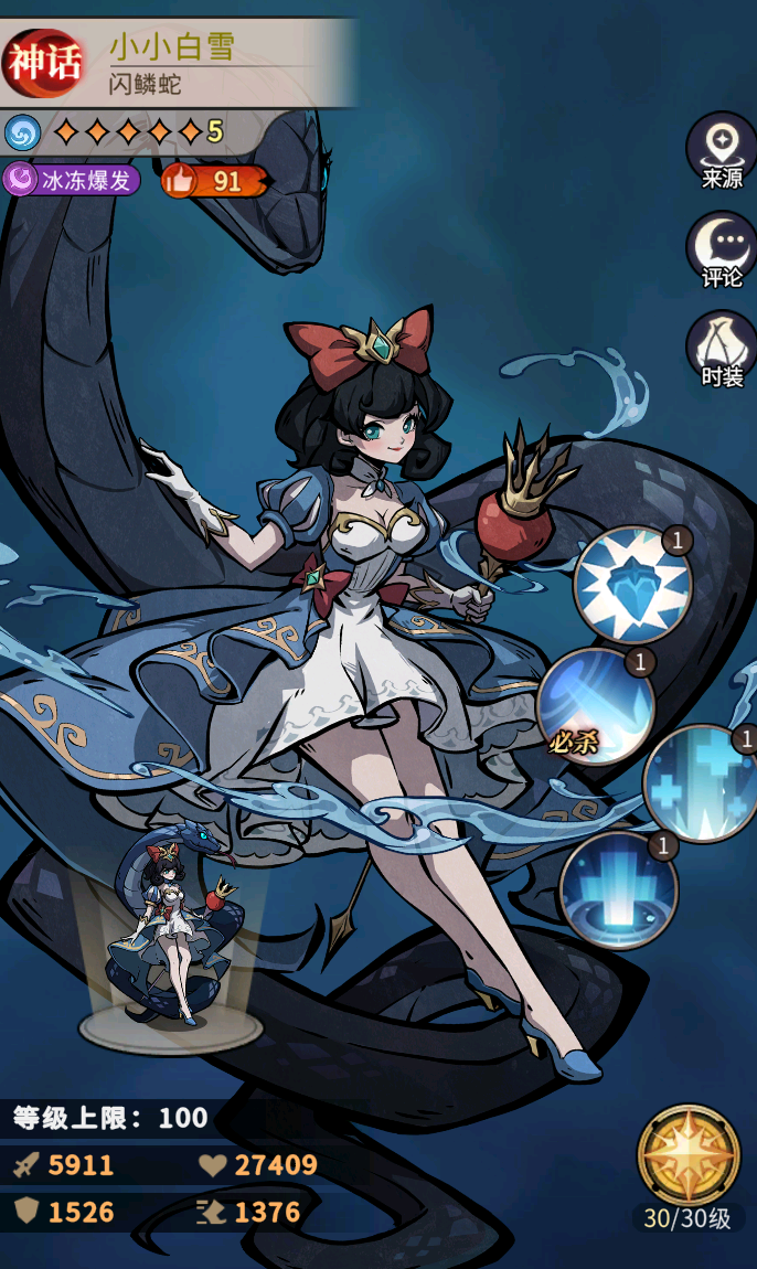 玩过卡牌游戏的小伙伴都晓得,前期阵容搭配不仅影响开荒进度,还影响自己游戏体验的爽感,有时间的小伙伴可以刷一个开局号,目前强度中,新手阵容建议选择小小红帽和白雪作为核心,这两个卡的强度作为输出极其优秀,能带来较好的开局体验。其次就是新手阵容是可以出现多张稀有蛇灵的,但是个人建议不要特意追求多张稀有蛇灵,大部分稀有蛇灵强度不行,就是狗粮的命,优先养成小小白雪,爆发输出,技能击杀追击,并提升稳定给敌方附加【冰冻】状态的能力,可以让你在前期推图无忧,在养成上白雪的核心属性就是暴击、暴击、暴击。能堆暴击的地方优先选择暴击就对了。白雪本身的暴击属性就高,暴击堆起来,满屏红字,看着就舒服。