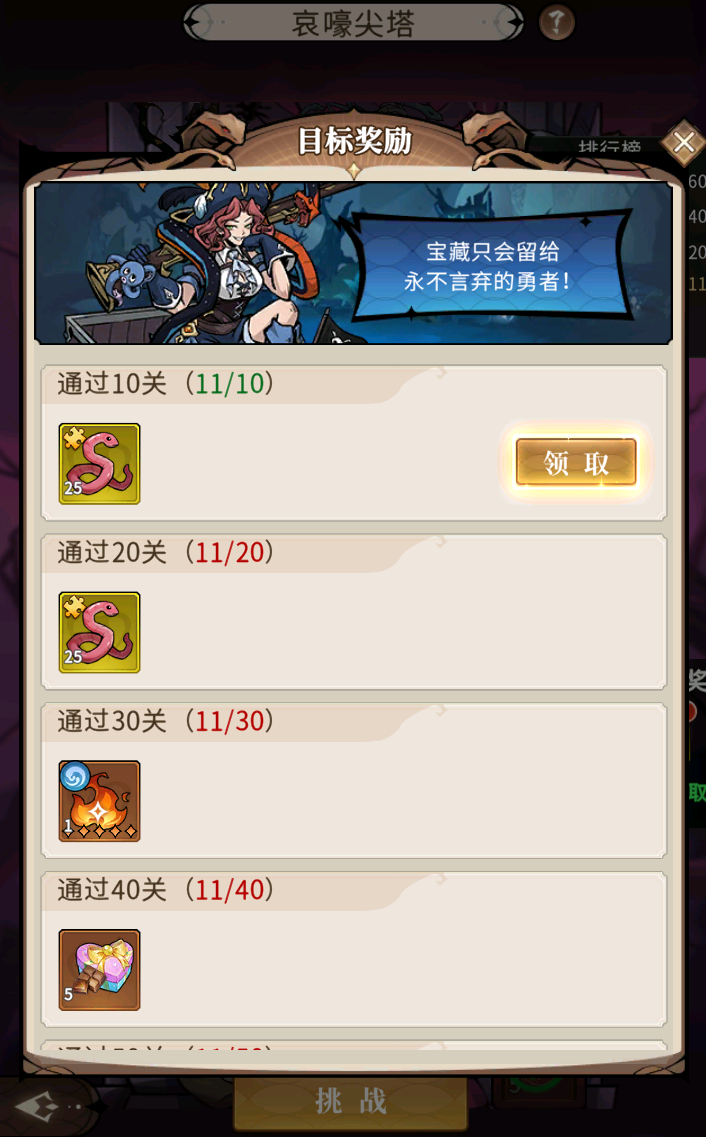 冒险作为这个游戏的最主要玩法,产出是最大的,并且也是最容易滚雪球的。通过主线给的资源可以更好的推进其他玩法,拿更多资源,反过来支撑推主线。主线进度是最重要的,尤其一些关键功能,早开一天都能滚雪球差很多。建议如果有精力,多磨磨主线,尽可能极限一点,第二天都会滚雪球滚的更大一点。主要说下哀嚎尖塔,这个是大量狗粮主要产出。产量和通过层数有关,由于是二队挑战的时候注意把2个主C拆分一下即可。
