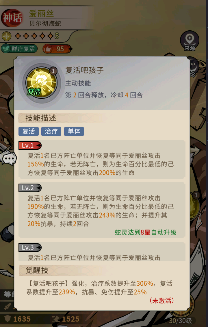 在前期选择阵容的时候,新手容易陷入不考虑自身投入情况下优先选择全神话品质阵容,会发现前期资源有限,一味的选择全神话阵容会出现升星困难,无法发挥神话品质蛇灵的全部实力,这里建议选择前期养二个核心,一辅助(爱丽丝)和一主C(灰姑娘),突破材料优先分配给核心输出。这样被淘汰下的主C还可以做副C,而爱丽丝这样的辅助,哪怕到了后期也依旧很强势。不过这里需要注意的是避免走养成误区,个人比较建议集中资源培养1-2名核心蛇灵,辅助蛇灵等到中期再培养,前期推图都可以占得住,缺的是输出。