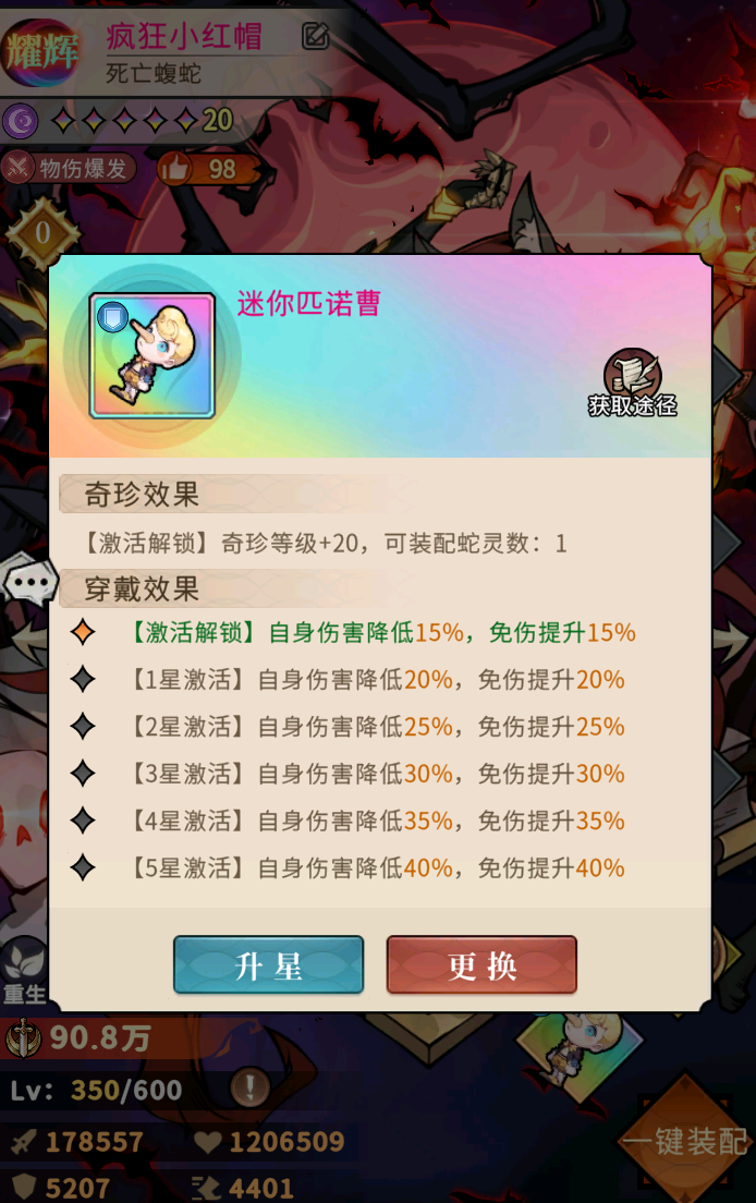 首先来说一下徽章的作用,除了百分比提升英雄基础属性外,自带的徽章技能相当于是给蛇灵增加buff或者是蛇灵的第二技能延伸,关于主流蛇灵徽章的如何搭配后续会单独开一篇攻略进行讲解,这里只需要记住同类效果的徽章只生效最高阶的即可。奇珍其实会徽章一样,对蛇灵带来的是buff类的加持,唯一不同的就是奇珍可以养成会随着星级的提升则进行提升,其次奇珍除了不仅穿戴会对单个英雄有加成,激活还会对整体战力带来加成,至于奇珍系统就不进行过多描述了,前期是接触不到,只有到了后期资源丰富后才会有接触~