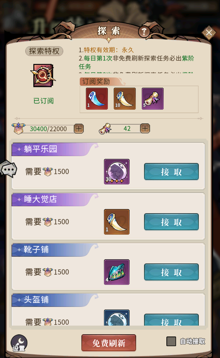 之前提到前期蛇灵本身的养成才是最关键的,所以文末的最后是围绕资源的规划来为大家讲解战力的提升,在前期资源获取途径集中在主线和副本试炼,可以获取多种不同的升级资源,这里除了自身刷图获得的奖励之外,要格外注意挂机收益和探索玩法;这里建议每天起来优先完成探索任务后再进行扫荡,避免浪费过多的探索值。