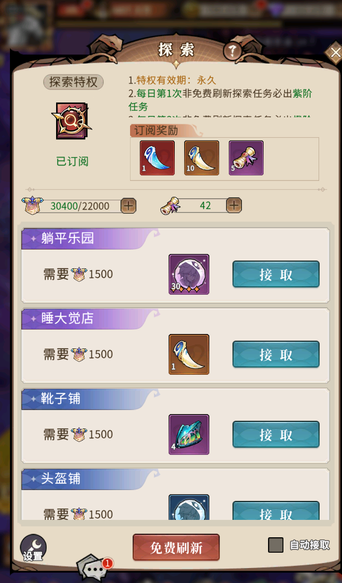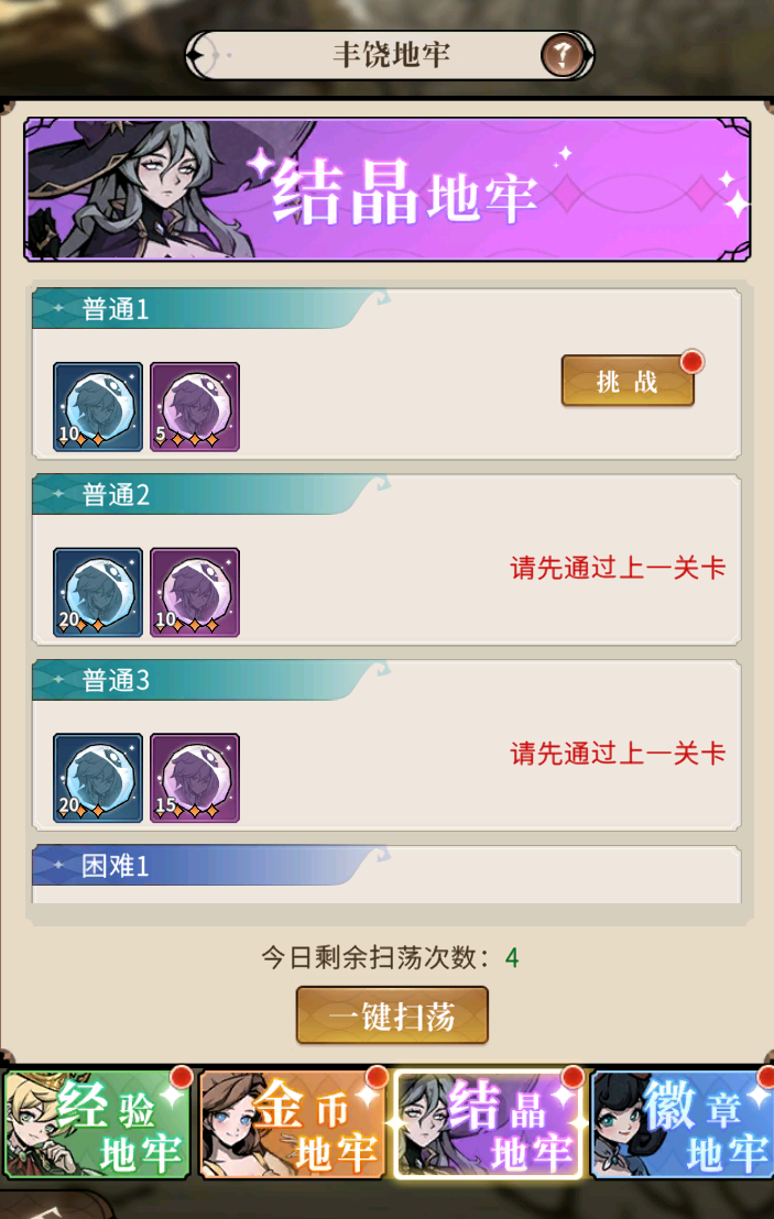 后面再来谈一谈这个游戏到了后期主要的玩法,首先是“丰饶地牢”可以通过探索地牢拿到海量资源,通过一关后还可以进行扫荡,每一类副本的扫荡机会完全独立,可以直接拿到通关关卡的奖励,免费扫荡机会消耗完后也可以消耗钻石来扫荡,然后是“藏宝图”在这里可以寻找蛇灵赠予的宝藏,通关也能拿到奖励,每张宝藏图会有4个线索组成,每一个线索上有10个据点,战胜据点就能拿到奖励,完成所有线索可以通过消耗钻石购买蛇灵。